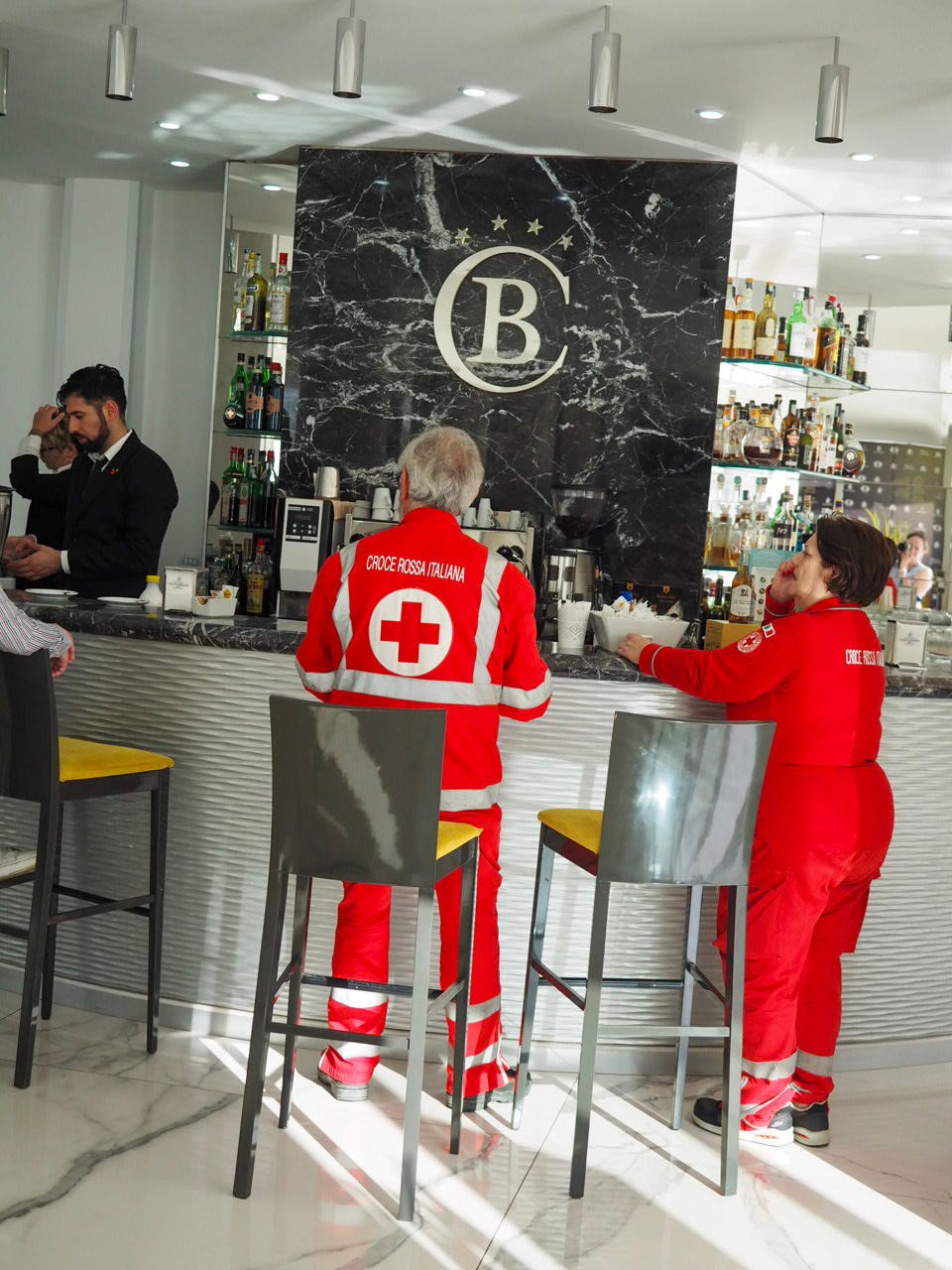 Chess games – at least the classical format ones – are often Wagnerian in length. (In contrast, blitz games, also known as speed chess, move at eye popping speed.) In this tournament, games started at 3pm and some were still going at 8pm. Competitive chess is not for the faint of heart, but unfortunately the intensity of the game can actually cause heart issues. During pivotal moves in high stakes games, heart rates can soar. Two members of the Italian Red Cross camped out in the lobby every day during the tournament. I saw the medics attend to quite a few participants slumped in armchairs placed strategically at exits. Fortunately, there weren’t any serious health issues.