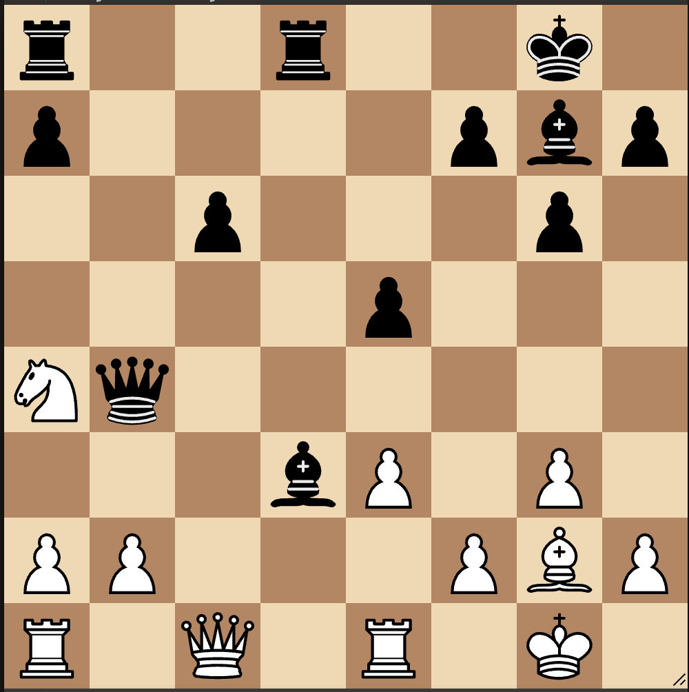 18... Nb4 On the way to c2. 19. Na4 Qb5 20. Bxb4 Qxb4