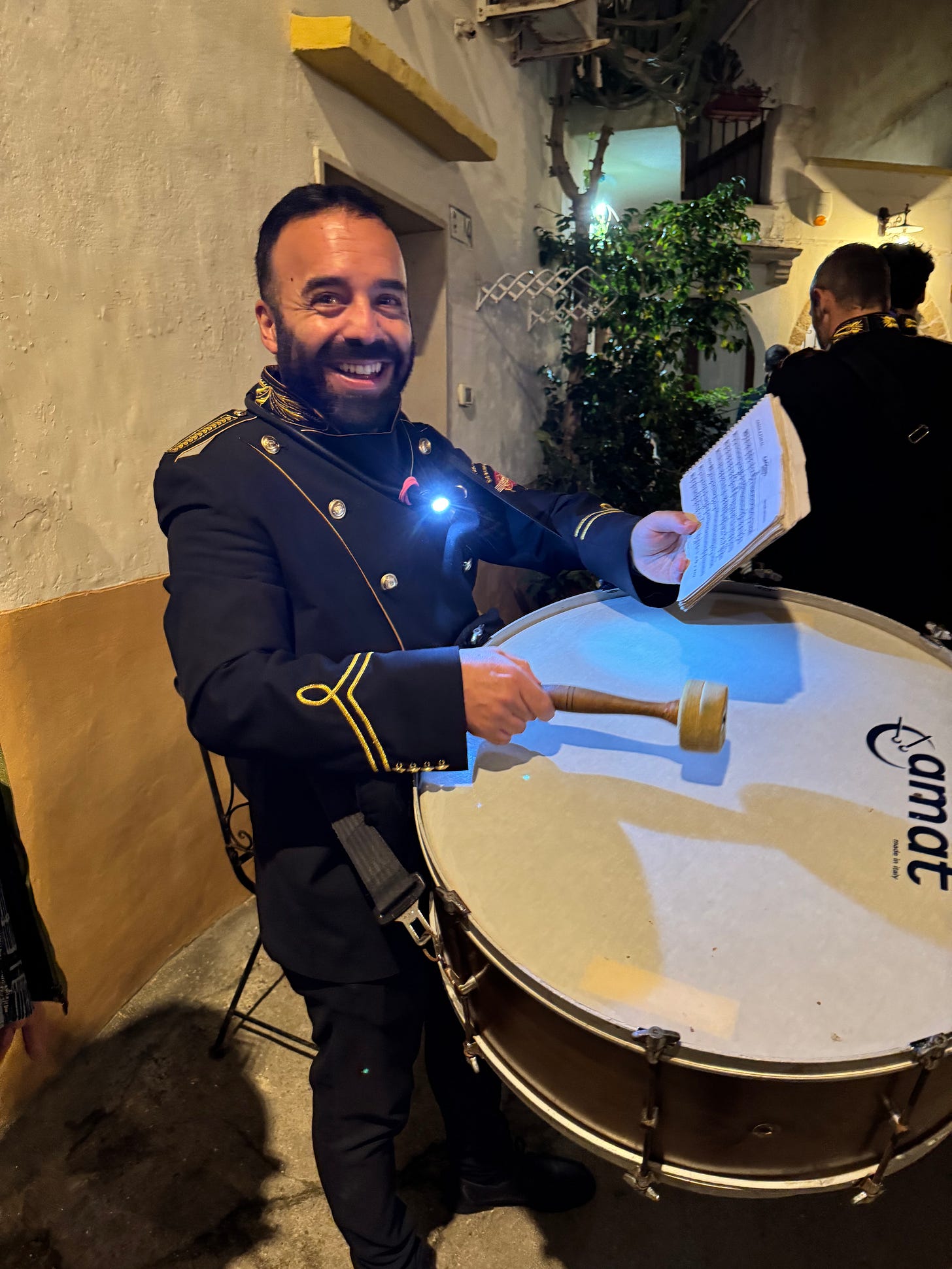 On an outing with Lily Ginsburg, the daughter of International Master Mark Ginsburg, I went to the tiny village of San Simone to hear pizzica music, which I wrote about in my last newsletter. On our final night in Puglia, Sarathi and I enjoyed a musical surprise when we bumped into a parade in the cobbled streets of Gallipoli.