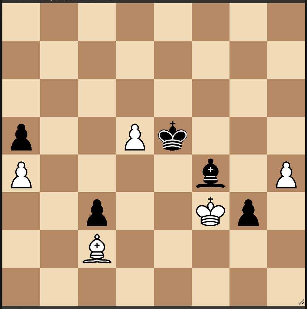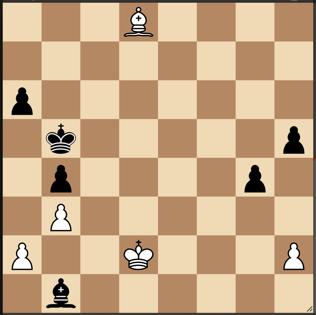 56. Bf6 a4+ 57. Kc2 Kc4 58. Kb2 Kd3 59. Be7 b3 60. Bf6 Ke2 61. Ka3