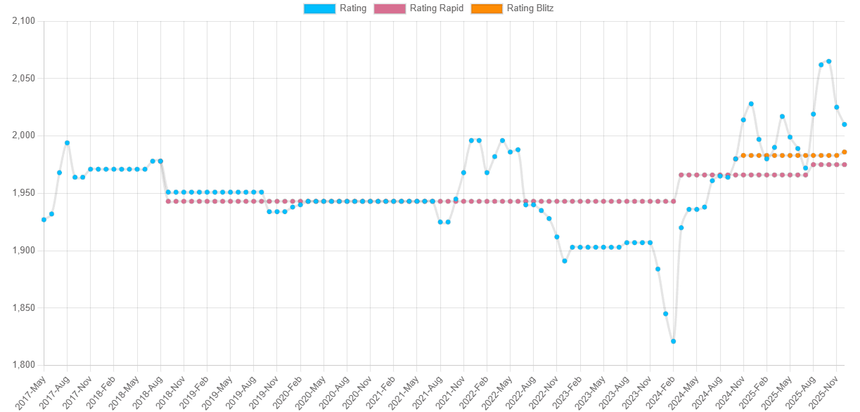 I was at my then-peak of 2028 FIDE and optimistic. Like many chess players, I considered myself to be underrated, and thought I should get a rating jump if I played outside of the United States, but Reykjavik was a wakeup call. I didn’t do too well and lost 18 points. I stewed on it for a few weeks, and that’s when I think I landed on this goal. (You can read about my Reykjavik experience here, by the way.)