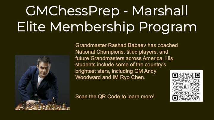Finally, if you’re looking for some GM Chess Prep, consider joining the Elite Membership Program featuring Grandmaster Rashad Babaev, who has a track record of success with working with some of the country’s brightest chess stars.