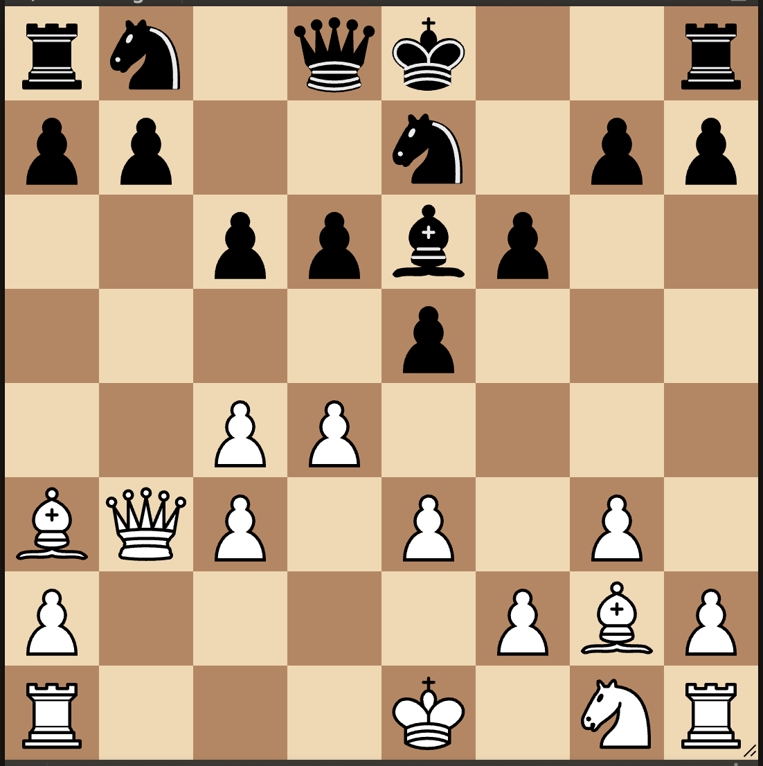 10. Ne2 Later in the game, I somewhat wished I had developed my knight to f3 instead because I felt d2 was a more useful square. But I opted for e2 to avoid being kicked away by e4, and it’s the reason I played e3 in the first place. But I do think Nge2 makes less sense here than it does in my usual English Botvinnik structure.